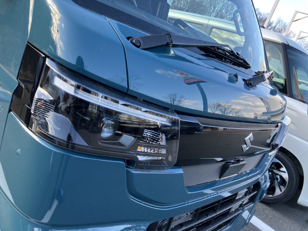 ヘッドライトまわりはシャープで、軽トラックでありながら現代的な表情に仕上がっています✨