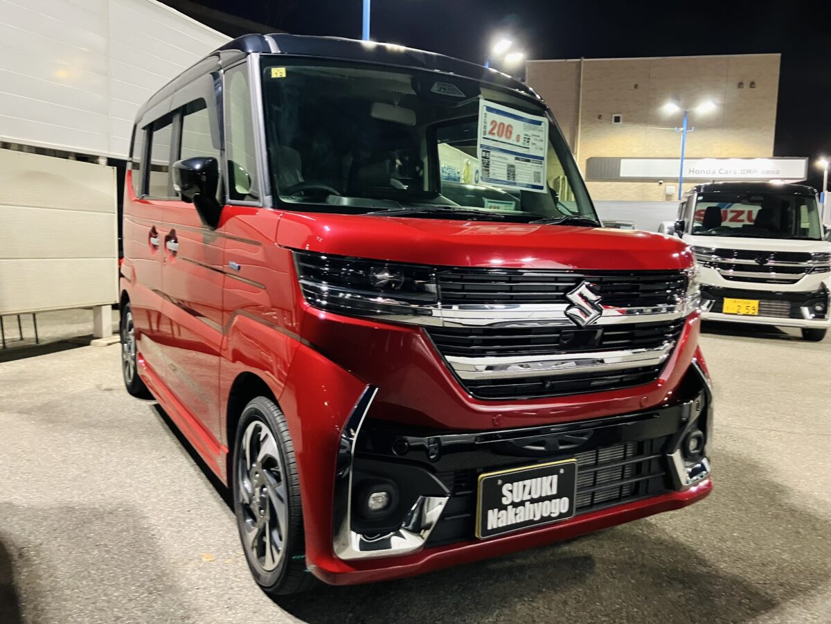 ❤️🔥🚗 鈴蘭台店の夜に映える“真っ赤なスペーシアカスタム”、存在感バツグンです! 🚗❤️🔥