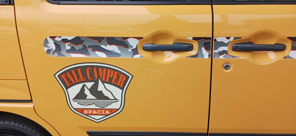 そしてサイドに施された“迷彩柄ストライプ”と“TALL CAMPER”のロゴ💥