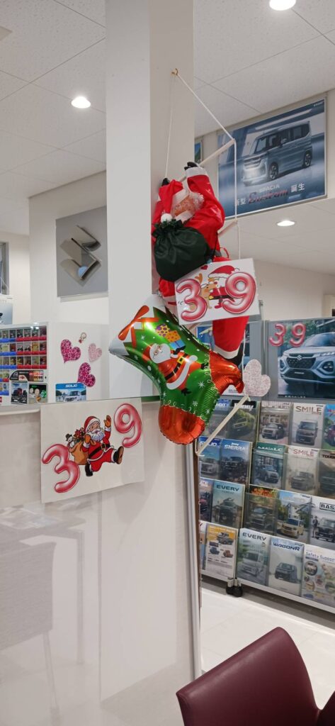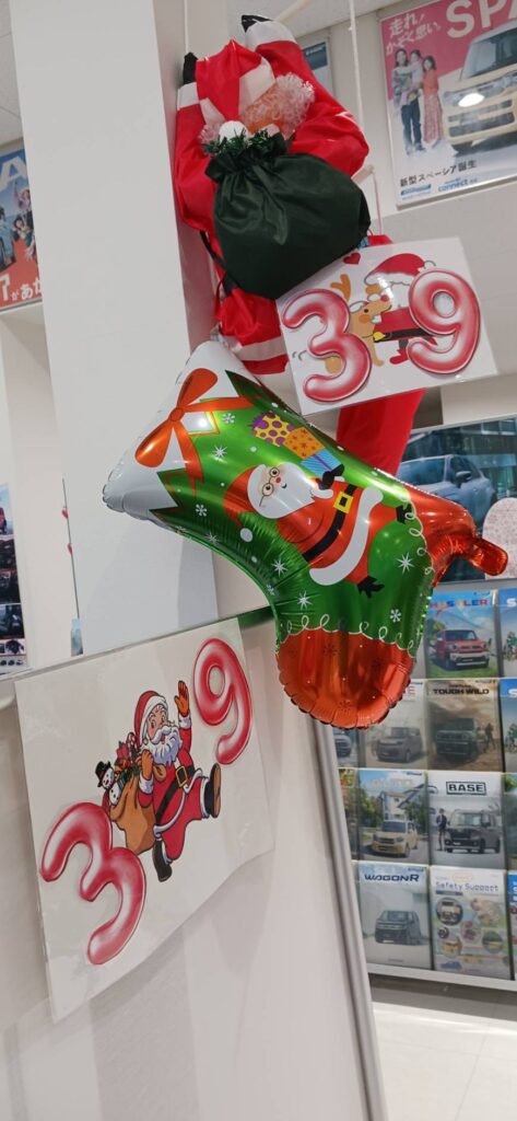 店内にはサンタ柄のバルーンや、39の数字が散りばめられたPOPがたくさん飾られていて、ちょっと早いクリスマス気分を味わえる空間になっています🎄🎅