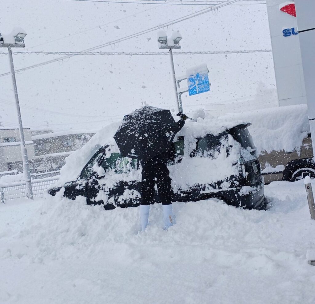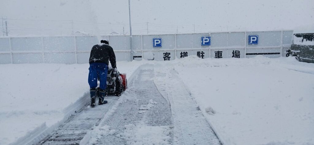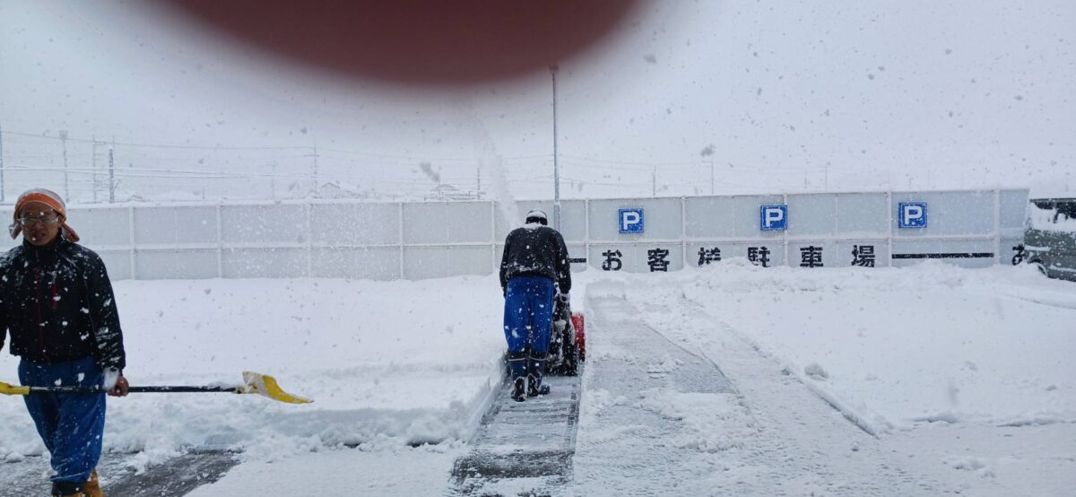 新雪が積もる中での作業でしたが、「お客様が安心してご来店できるように」という気持ちで、一台一台止めやすいよう意識しながら対応しています😊❄️